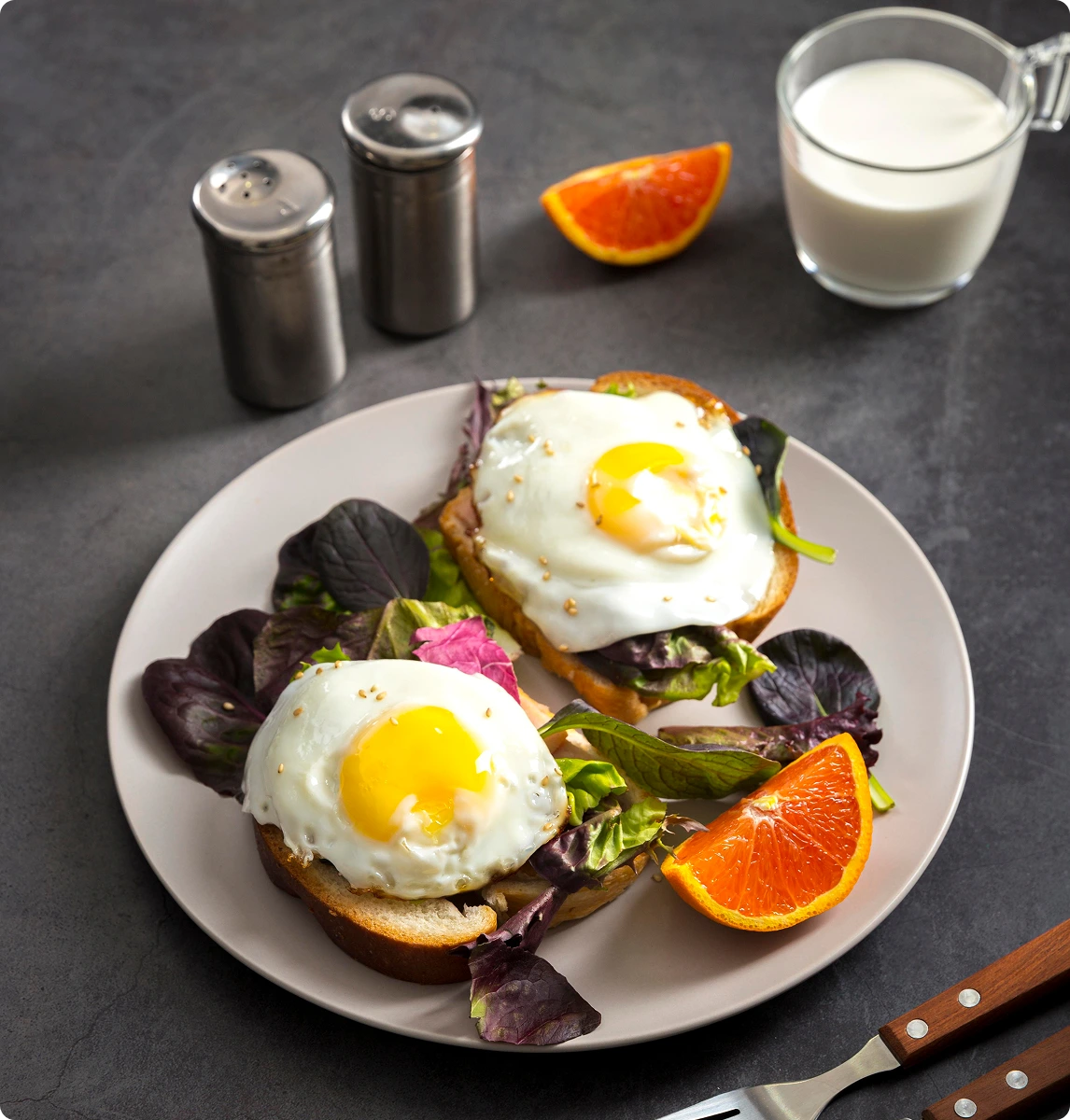 Poached eggs on an English muffin with Canadian bacon and creamy hollandaise sauce.
